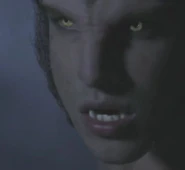 Werewolves are known to be aggressive, territorial, possessive, and hot temper even in human form. Tyler Lockwood (because apparently everything I know about werewolves comes from a version years after they were originally depicted) often had trouble controlling his temper, because of the werewolf gene. Same thing goes for werewolves who have been affected have a hard time controlling their temper. They will also blackout in a fit of rage without remembering what they did due to their primal state. Those with the werewolf curse still latent can exhibit some supernatural traits, which can be triggered by aggression, along with unusual physical strength for the person's given a size, but they cannot fully transform. Also, werewolves have a higher body temperature than humans, because once again everything I know about werewolves come from one movie I watched once. Tyler says this when he just activated his curse. He says that he feels as if his skin is on fire. With the curse activated their eyes turn yellow while enraged. Activating the curse is also painful. When there is a full moon after sunset, they will transform into canine form, looking very much like a timber-wolf, although larger. They can also be distinguished from regular wolves by their displays of supernatural strength and speed. A werewolf doesn't wear any clothes — not even undergarments, though in beast form it is not necessary. Although, they will face some problems when they turn back into humans. Werewolves in human form are very possessive over their mates especially males, and have a strong sex drive. Along with animal-like tenancies and big appetites, especially for raw meat. They are known to be charismatic, handsome, or beautiful.